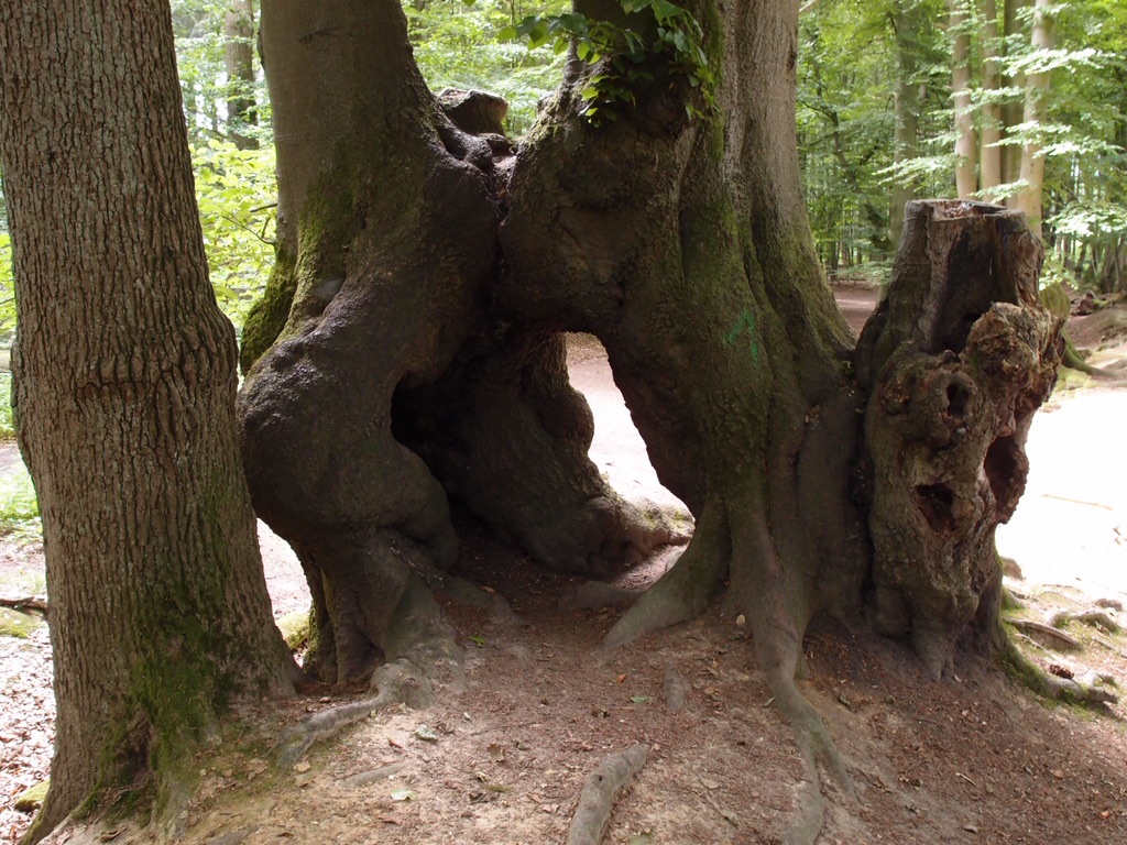 Aachen, ehemalige Grenzstation Köpfchen; 18.07., 10 Uhr. Herr Gleißner begrüßt mich mit einem herzlichen „Ich bin Peter”. Er will mir die Kopfbuchen entlang dem Landgraben und auch zwei dreihundertjährige Eichen zeigen, auf dem Weg zu der 700-jährigen „Forster Linde”. Zuerst allerdings stoßen wir auf Relikte des Westwalls des „Tausendjährigen Reichs”. Rasch erreichen wir den alten Grenzweg, der im fünfzehnten Jahrhundert dicht mit Buchen bepflanzt wurde. Über Jahrhunderte wurden diese Buchen regelmäßig zurückgeschnitten, wodurch die immer wieder nachwachsenden Stockausschläge sich zu einer dichten Grenzbefestigung verwuchsen. Etwa Anfang des zwanzigsten Jahrhunderts wurde diese Kultur aufgegeben – und die Buchen wuchsen weiter. Längst haben sie einen Stammdurchmesser erreicht, ab welchem sie nicht mehr auf den Stock gesetzt werden können, will man sie nicht fällen.