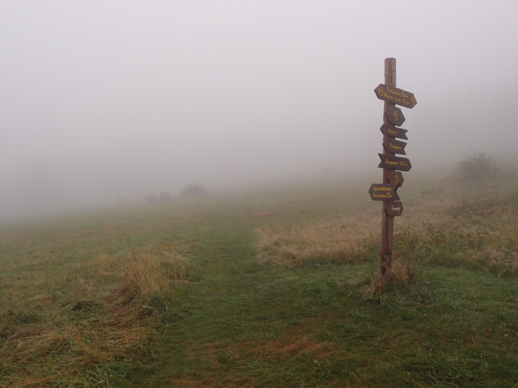 17.08. Als ich auf dem Berg ankomme, ist von diesem nichts zu sehen: Der Hohe Meißner liegt in dichtem Nebel. Sehr leicht könnte ich mich in dieser Situation verirren. So sind mir die zahlreichen und in kurzen Abständen aufgestellten Wegweiser wirklich eine wichtige Hilfe. Bei normalen Bedingungen fände ich diese sicherlich überdimensioniert oder gar überflüssig. Man könnte diese Erfahrung passend übertragen auf die öffentlichen Auseinandersetzungen, die vor dem Hintergrund der gestiegenen Flüchtlingszahlen aufgebrochen sind: Die zentralen Markierungen zeigen ihre Bedeutung nicht im „Normalzustand“, sondern diese müssen so gesetzt und verankert sein, dass sie gerade im Zustand der geistigen Verirrung als Orientierung funktionieren.