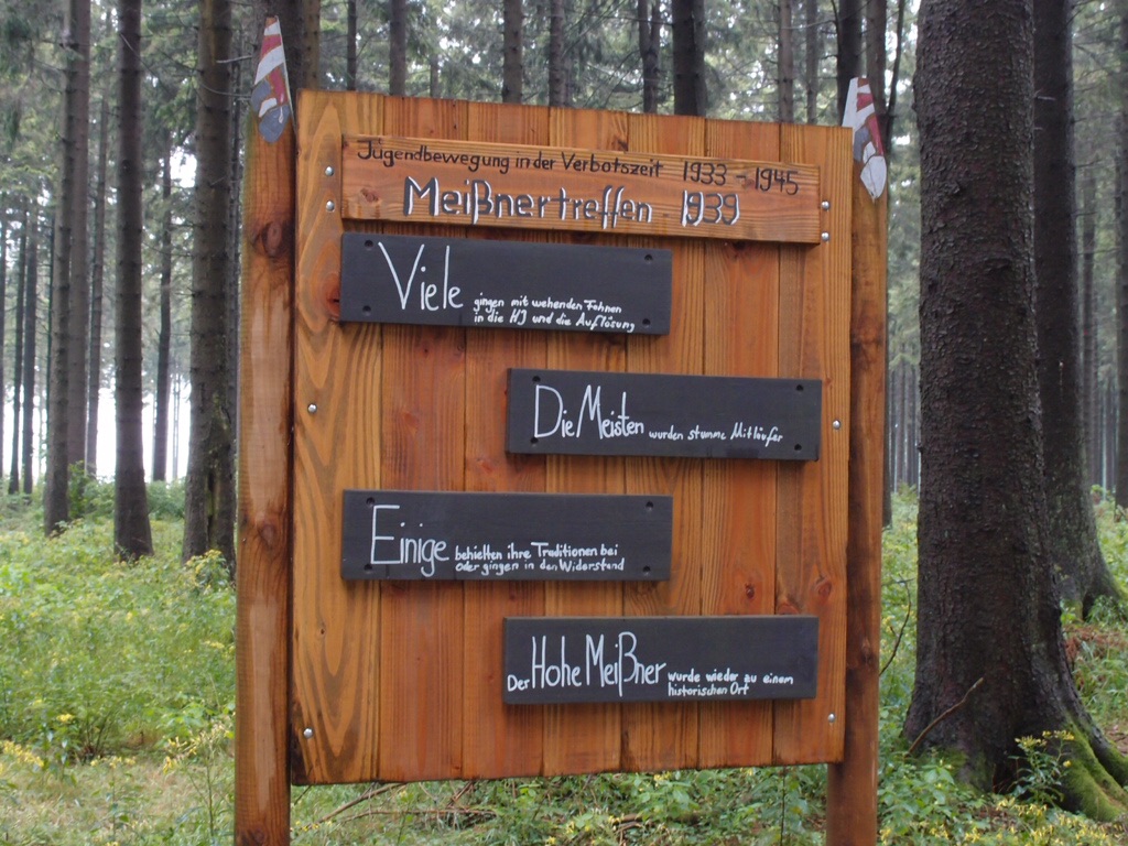 Bei meinem Spaziergang auf dem Meißner treffe ich auf keine Jugendlichen, sehe überhaupt nur sehr wenige Wanderer. Hingegen kommen Gruppen von Senioren mit dem Auto oder im Reisebus angefahren. Rebellion gegen geistige Enge scheint nicht so sehr deren Anliegen. Aber wahrscheinlich habe ich nur einen ungünstigen Tag erwischt. Beispielsweise 1988, zum 75. Jahrestag des Freideutschen Jugendtages kam es zu einem Treffen auf dem Hohen Meißner, an dem wiederum mehrere Tausend Jugendbewegte teilnahmen und erneut eine Erklärung verabschiedeten: