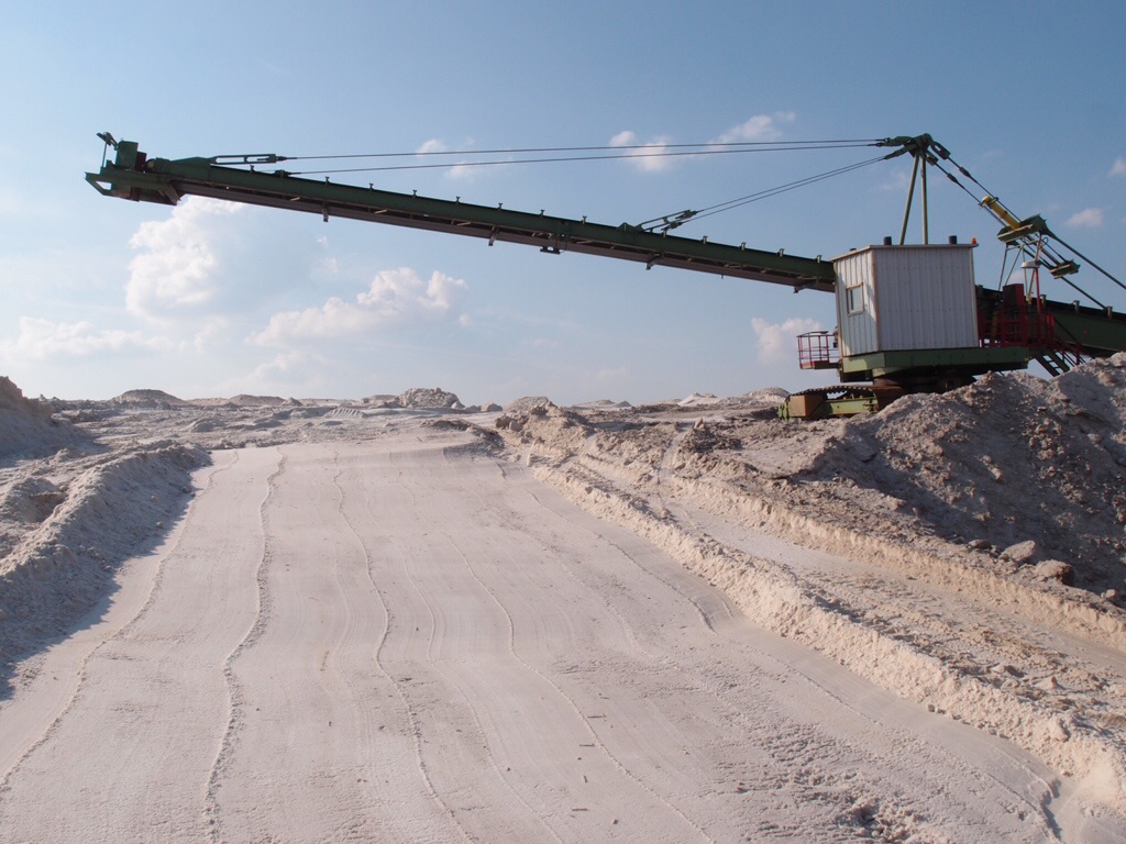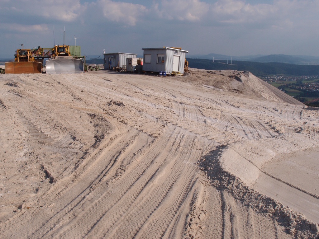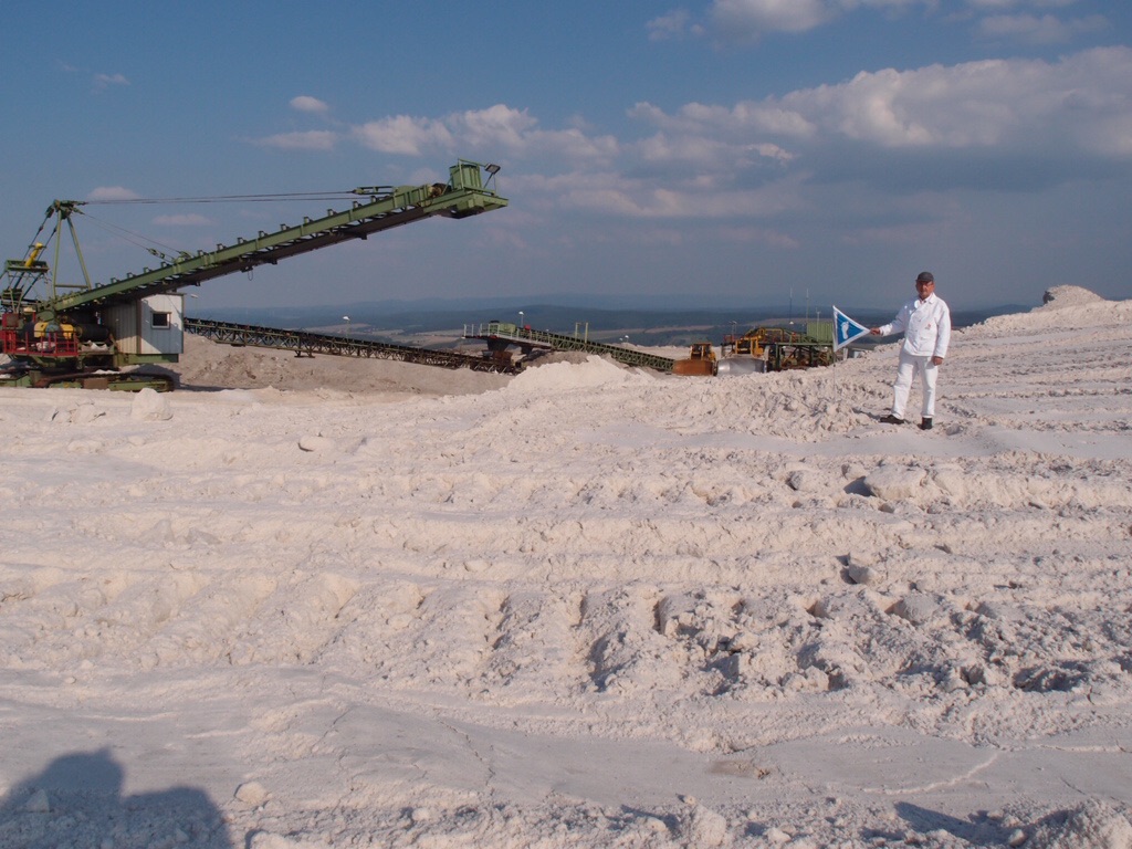 21.08. Ankunft in Heringen. Ich stehe vor dem Werkstor der Zufahrt zur Halde IV – allgemein auch „Monte Kali“ genannt. Hier bin ich verabredet zu einer Führung, hoch auf die Halde. Und ich werde bereits erwartet: „Horch mal, das „Sie“ ist im Bergbau etwas verpönt. Ich bin Walter.“ Walter in seiner weißen Bergmanns-Uniform passt in die Welt – in diese Welt. Auf meine Frage, ob denn alle Bergleute im Salzbergbau weiße Kleidung tragen, antwortet er mit Bedeutung in der Stimme: „Nein, nur das Aufsichtspersonal.“ Dann kann ja heute nix mehr schiefgehen. Oben angekommen bleibt das Erlebnis in einer eigenartigen Schwebe. Einerseits ist die Künstlichkeit des Ortes und die Lebensfeindlichkeit des aufgeschichteten Materials omnipräsent. Andererseits hat die Situation vieles von einem Berggipfel-Erlebnis. Fehlt eigentlich nur noch eine Gondelbahn und die Skihütte. Die Aussicht ist fantastisch. So erblickt man auch ganz in der Nähe noch eine weitere Salz-Halde. Und noch eine dritte Grube gibt es hier in der Region, erfahre ich von Walter. Inzwischen gehören alle drei zu dem Konzern Kali+Salz (K+S). „In den drei Gruben zusammen sind etwa 4500 Mitarbeiter beschäftigt.“ Walter rechnet mir weiter vor: Zählt man die Beschäftigten in den von den Gruben abhängigen Betriebe hinzu, wie beispielsweise Bäcker und Lebensmittelhändler, und dann auch noch die jeweiligen Familienangehörigen der Beschäftigten, so kann man sagen, dass etwa 20.000 Menschen dank Kali+Salz hier leben können. Es klingt wie ein tiefgläubig gesprochenes Glaubensbekenntnis. Und es folgen noch weitere solcher Mantras; etwa: „Es gibt keinen reinen Bergbau.“ Das nun klingt ein wenig wie die Absolution nach der Beichte und soll heißen: Wo immer Bergleute etwas aus der Erde holen, entsteht immer auch Abfall – bergmännisch gesprochen „Abraum“. Kein Rohstoff kann in reiner Form, ohne Beistoffe gewonnen werden. Darum gibt es hier diese Halde. „Nur dank dieser Halde kann Kali+Salz weiterarbeiten.” Schon folgt das nächste Mantra: „Steht das Band, dann steht das Werk.“ Seit knapp vierzig Jahren läuft nun dieses Förderband, schüttet unaufhörlich weitere Salzmassen auf die Halde. Die inzwischen überdeckte Grundfläche misst annähernd hundert Hektar, das entstandene Plateau misst bereits etwa vierzig Hektar. Der in nur vier Jahrzehnten entstandene „Berg“ erhebt sich 100 bis 250 Meter hoch über der ehemaligen Ackerkrume. Dabei „schmilzt“ der Berg jährlich um sechs bis sieben Meter ab, was jährlich wieder „nachgefüllt“ wird: Auch wenn das aufgeschüttete Steinsalz nach kurzer Zeit steinhart wird, so bleibt es doch wasserlöslich und den Niederschlägen frei ausgesetzt. Rings um die Halde herum müssen daher Sickerwässer kontinuierlich aufgefangen und in große Becken gepumpt werden. Von dort wird diese Salzlösung dann entweder in den nahen Fluss Werra geleitet oder 400 Meter tief in die Erde in eine Kreideschicht (Plattendolomit) verpresst. In diesem Zusammenhang wiederholt Walter mehrfach sein letztes Mantra: „Du darfst nix Schlechtes schreiben über K+S!“ Mit diesen Worten im Nachhall steigen wir von der Halde ab. Es fühlt sich an, als würde man auf vereistem Schnee gehen.