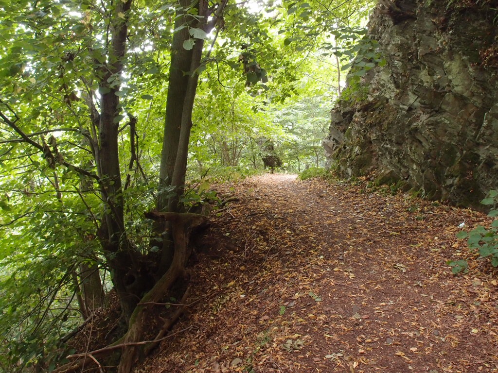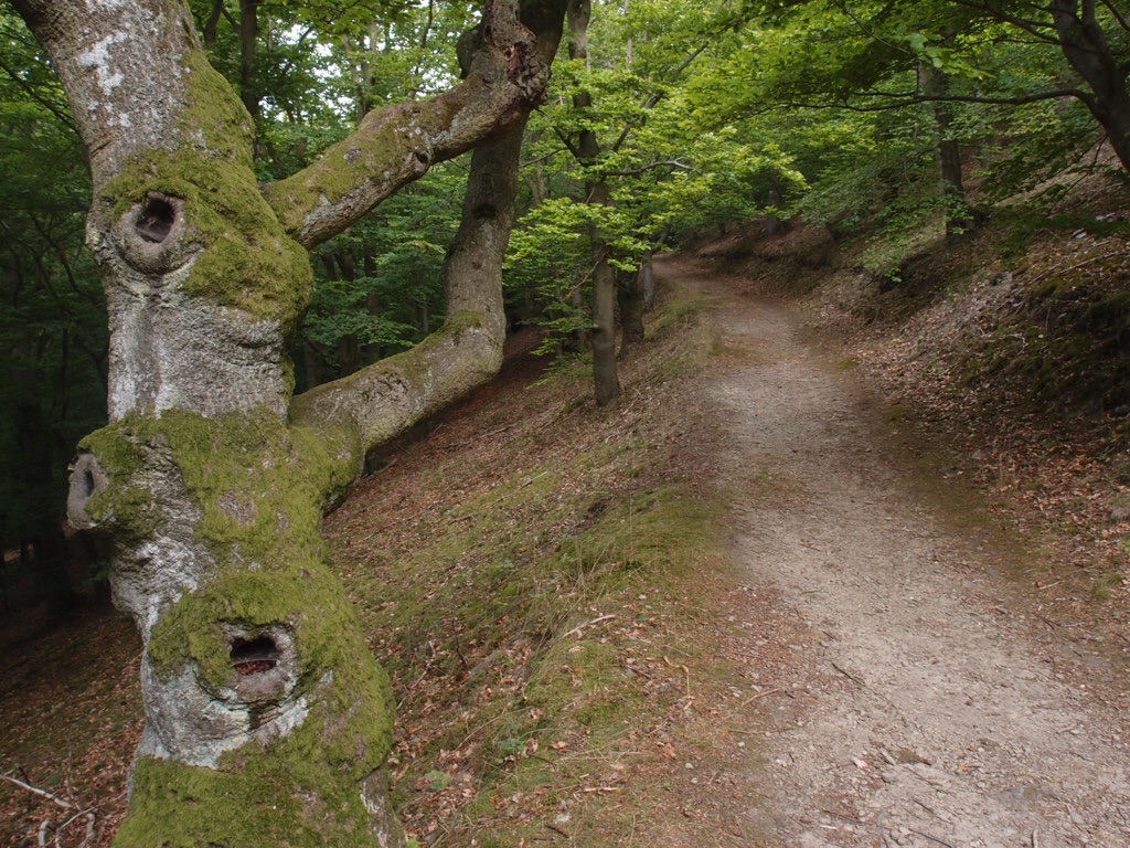 Steil geht es bergauf und bald enden dann auch die breiten, befestigten Wege. Mal auf engen, mal auf lichten Pfaden führt der Urwald-Steig sowohl durch jungen, schier undurchsichtigen, wie auch durch alten, hallenartigen Buchenwald. Helle Waldabschnitte wechseln mit dunklen. Das eher hellgrüne Laub der Buchen kontrastiert mit den dunkleren, leicht olivgrünen Blätter der Eichen, die sich vereinzelt dazwischen finden. Großes Landschaftskino – ständig gibt es etwas zu entdecken. Der Boden bietet den Füßen oft einen angenehm weichen Auftritt und so gehen diese fast wie von selbst – auch wenn es immer mal hoch und runter geht. Die schönen Aussichten und die Abwechslung der Wege lassen die Anstrengung vergessen. Ebenfalls vergessen lässt der Urwald-Steig die Frage, ob das nun Urwald sei oder eines Tages werden könnte. Auch die Frage, wo das Holz herkommen soll, das wir ja doch benötigen, ist an diesem Ort nicht angebracht. In Erinnerung hingegen kommt mir das Zitat, das ich mir im Naturparkzentrum notiert habe: